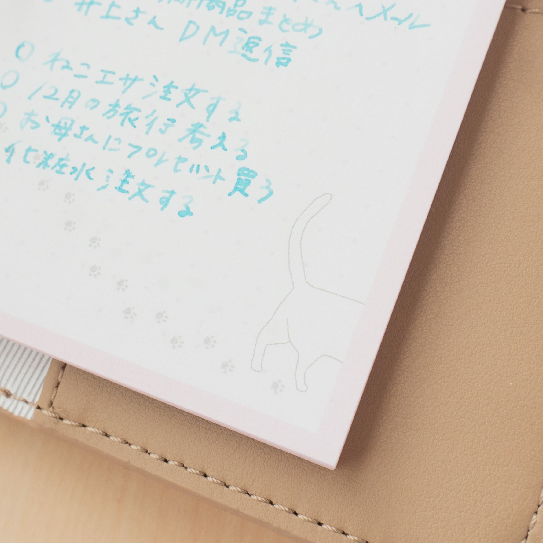 そこに足あとをつけながら歩いていくねこの姿が……。見開きで使うと足あとがつながって、まるでねこがリフィルの上を歩いているように見えます。